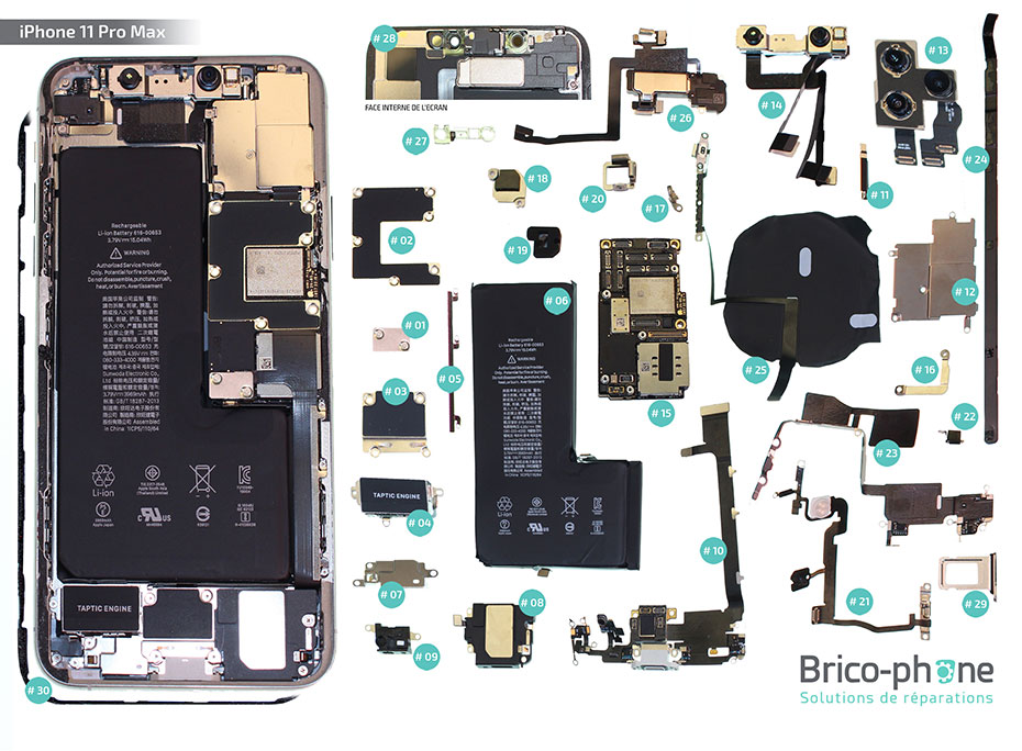 Vue éclatée des pièces détachées de l'iPhone 11 Pro Max